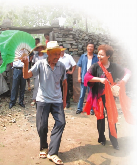 花鼓老艺人陈开俊向文艺工作者传授舞艺(摄影:高启民)