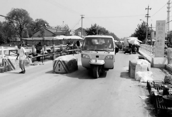 河滩桥附近包子铺的李女士介绍说,拉沙车通常都是四五辆一起穿行,天气好的时候,拉沙车队经过后整条街上尘土飞扬,遇到下雨天,就甩的到处都是泥。“现在桥墩又安上了,可以挡住部分大型货车,对小货车还是起不到作用”,李女士说,希望相关部门能够优化桥墩设置,使桥墩能够起到阻挡拉沙车穿行的作用。