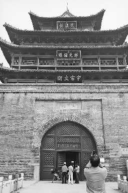 光岳楼管理处主任魏聊介绍,光岳楼外观为四重檐歇山十字脊过街式楼阁,构造上分为墩台和主楼两部分。墩台为砖石砌成的正四面