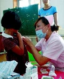 8点40分,孩子们排着队等着疫苗接种。没有父母的陪同,孩子们显得很勇敢,虽然免不了紧张,但大多数孩子不哭不闹。即使个别孩子害怕地哭了起来,不肯打针,这对刘晴玉来说,说服孩子打针并不是件难事。“你叫什么名字”、“你几岁了”、“早晨吃什么了”,晴玉总是抓着孩子的手和他们轻松地聊天、沟通,几句话下来,疫苗已经接种完毕。“其实孩子就是心理恐惧,聊天可以分散他们的注意力,就不觉得疼了。”刘晴玉忽闪着大眼睛说道。