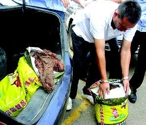 16日,记者在青岛市珠海路派出所门前见到缴获的三辆轿车,一辆比亚迪轿车、一辆本田轿车、一辆别克轿车,三车上都各有一袋废铜丝和同样包装的泥土。在审讯室,比亚迪车上的“老板”董某交代,其实掉包很简单,就是将后排座椅放倒,嫌价低将后备箱关上,也是他们故意为掉包创造的条件,而且成交后,车上两个人帮买主抬到车上,买主见后备箱只有一个袋子,而且之前验过,一般都不会起疑心。记者看到三辆车中的别克轿车后备箱还加装了一块光滑的钢板,有了钢板拖动袋子就方便多了。而且他们还准备了很多相同的编织袋,卖掉一袋土再装一袋新的备用。