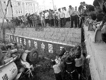 16日清晨5时左右,栖霞臧家庄镇东寨村外突然传来“轰隆”一声,一位早起上班的女士经过此处时惊讶地看到,路边的护栏被撞断了,一辆混凝土搅拌车翻下4米高的路崖,正“四脚朝天”躺在河里,听到司机的呼救声,这名女士急忙拨打了110报警电话。30分钟后,栖霞消防大队的救援官兵赶到现场,此时民警已经对两边道路实施了交通管制,划出警戒区域,疏散围观群众。救援人员看到,在距路面4米的河内躺着一辆搅拌车,车头已面目全非,严重变形,驾驶室内不时传来司机痛苦的呼救声。
