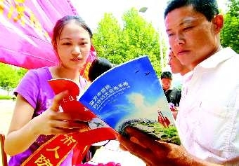 16日是中国人民防空成立60周年纪念日,在市区人民广场上,工作人员正在向市民发放《安全应急与防空知识》教材及人防宣传材料。当日,由临沂市人防办主办的庆祝人民防空成立60周年宣传活动在临沂人民广场举行。