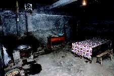 在泗水希孔爱心小学,记者看到学校的厨房是一间简陋的瓦房改建成的,厨房里是用黄土和水泥筑成的一个灶台。黄泥搭建的台子上摆放着一些餐具和土豆。学校90多名孩子每天的饭菜就是由这个简陋的厨房做出来的。厨房的隔壁是间不到10平方米的房子,里面摆放着8张已经掉漆的低矮桌子,学生中午都是趴在这些摇摇晃晃的桌子上吃饭。