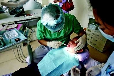 19日,在青岛市口腔医院,青岛太平路小学的学生正在做窝沟封闭。9月20日是第二十二个全国“爱牙日”,今年的活动主题为“窝沟封闭,保护牙齿”。今年市南区小学4000名孩子将免费进行窝沟封闭,保护牙齿。