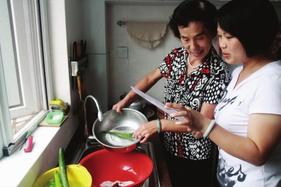 19日,在健康街社区内,社区工作人员正在入户宣传“低碳”生活小窍门。据了解,近日健康街社区组织了一场“低碳明星家庭”的评选活动,通过比赛来加强居民低碳生活、节电环保的理念。