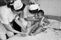 据介绍,当天,医院为小聪聪进行双眼的B超、角膜曲率、肝肾脏功能、乙肝五项、心电图等全面检查。由于小聪聪突然发烧,白细胞和心肌酶的检查值稍高。“这也是小儿发烧的正常反应。”医护人员告诉记者,除此之外,小聪聪的身体并无大碍,基本符合手术条件。