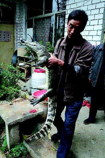 半小时后,经过几番努力,鳄鱼终于被逮住,被运回刘长东家里。