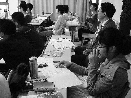 右图:20日,在山大2009级泰山学堂第一堂课上,20名泰山生正在听课。 杨凡 摄