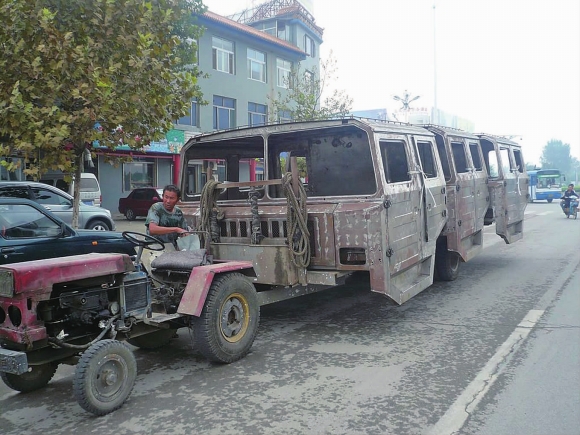 21日上午10时30分许,一辆小型拖拉机运载着3个大车驾驶舱行驶在小井转盘附近时,被巡逻的民警发现。考虑到车辆安全行驶,民警调配来一辆大型车辆将3个驾驶舱全部转移,并为拖拉机驾驶员讲解了交通安全知识。