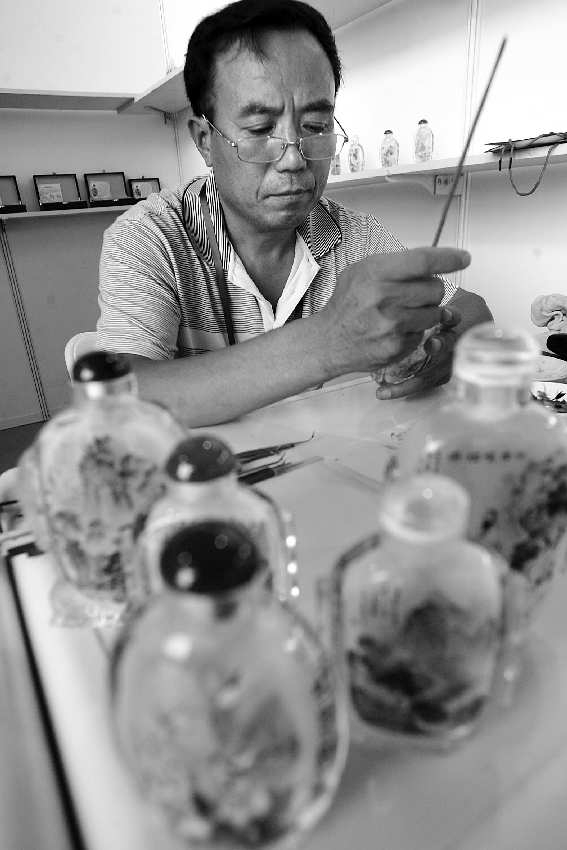 21日,2010山东省旅游商品博览会暨第八届山东省旅游商品创新设计大赛在曲阜孔子文化会展中心(省文博会济宁会场)开幕o来自省内的民间艺人参加第六届山东省民间手工艺制作大师评选,并现场展示制作技艺,他们精湛的技艺博得现场观众的称赞,也成为省文博会济宁会场最受追捧的明星o