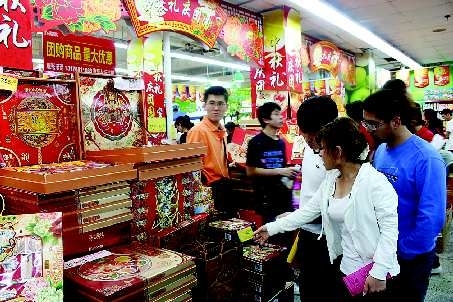 中秋节前—天,记者在威海市家家悦总店看到,众多品牌月饼利用最