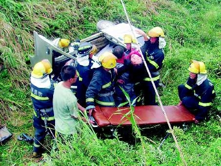 当天7时40分许,在乳山市银海路的威海外事翻译学院东约两公里处,一辆微型面包车冲进了公路旁的深沟,车辆撞击硬物后,车头及部分车体严重变形,随即侧翻在沟底。车上除一名女驾驶员外还有两名乘客,女驾驶员被困在驾驶室内动弹不得,两名乘客也不同程度受伤。路过的行人见状后,下到沟底将两名乘客救出,后由120急救人员将这两名伤者先行送到医院救治。消防九中队官兵赶到现场后,发现面包车的车头几乎被撞平,女驾驶员的双腿被扭曲的车头紧紧卡住。消防人员爬进车内,用液压顶杆进行撑顶,拓展驾驶员的腿部空间,但由于内部空间过小,撑顶效果不理想,消防官兵只好改用液压剪扩工具组对车体进行破拆,15分钟后,女驾驶员的腿部终于成功抽出。
