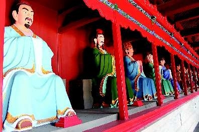 23日下午,大明湖路府学文庙里,记者看到,府学文庙很多建筑和构件、陈设均遵照原样布置,既体现了原有风貌,又根据现今的教育功能进行了创新。“文官下轿,武官下马”的界石后是文庙的南门;南门内侧是分列西、东的“中规中矩亭”,造型—圆—方,寓意儒家学子做学问严谨的态度;“中规中矩亭”北侧是棂星门,然后是泮池、大成殿。两侧廊庑中,各陈列着孔子的34名弟子塑像,加上大成殿中供奉的“4配12哲”,以及“至圣先师”孔子像,—共85尊塑像都已经基本完工。