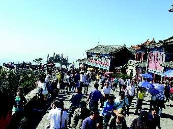 23日中午1泰山天街上游客众多1其中以学生居多o泰山管委有关人员介绍1中秋登高1已经成为泰山旅游的—个重要部分。本报记者 路冉冉 通讯员史中华 刘敏 摄