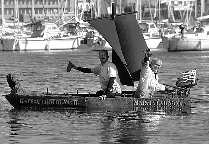 当天,这艘巧克力帆船载着制造者和一名乘客成功驶离孔卡诺港,在海上巡航数圈后安全返回,现场观众喝彩声一片。
