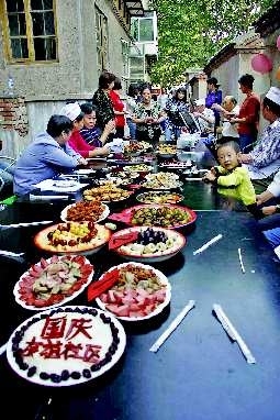 26日上午,菜肴上齐,居民们正在观赏文艺节目。当日,烟台市友谊街社区“迎国庆、创先争优”第二届厨艺大比拼开赛。此次比赛共有11户居民参与,每位参赛选手准备两道菜,在厨艺比拼的同时,居民们还准备了各种文艺节目助兴,喜迎共和国华诞。