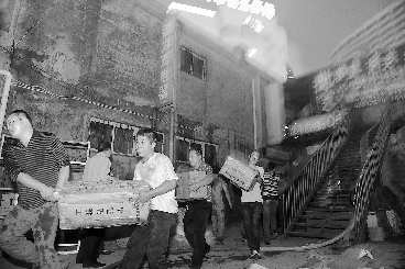 转眼工夫,仓库区的院子内堆满了抢救出来的货物。业主郭女士说,她家的仓库就在着火仓库的下面,幸亏抢救及时,要不光救火时流下来的水也得毁了这些货。