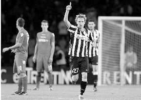 北京时间9月27日凌晨,意甲联赛第五轮尤文图斯队坐镇主场,以4:2击败卡利亚里队。“内德维德二世”克拉西奇上演“帽子戏法”。图为克拉西奇庆祝进球。