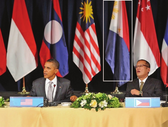 美国总统贝拉克 奥巴马24日在纽约与东南亚国家领导人会晤,相关照片发布在一些国家的政府网站上。照片显示,与会领导人身后依照惯例升挂着各国国旗。