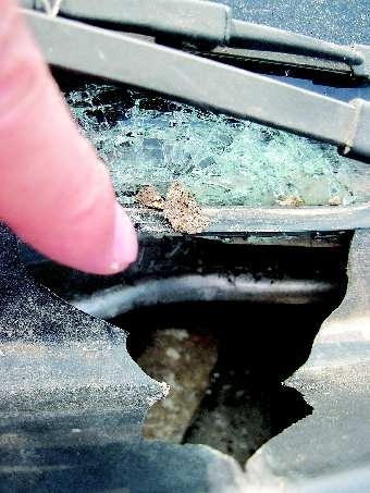 “可能是炸药放多了。三四个放炮的,事后都跑了。”图为砸坏轿车的石头。