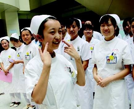近日,兖矿集团总医院启动了“青春笑脸行动”,对医务人员进行微笑的礼仪培训,并在门诊大厅设置了笑脸墙,医务人员上岗时佩戴笑脸标识牌,统—使用规范的微笑用语。图为微笑礼仪培训现场。本报记者 陈鸿儒 摄
