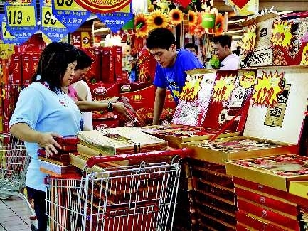 记者在走访中发现,大型超市内难觅的月饼,在一些街头小店仍然可以看到,但是大部分都在进行促销甩卖。威利发的一家连锁店打出“月饼买一送一”的标语。销售人员告诉记者:“剩下的月饼不多了,能卖就卖了。实在卖不完就退回总厂。”