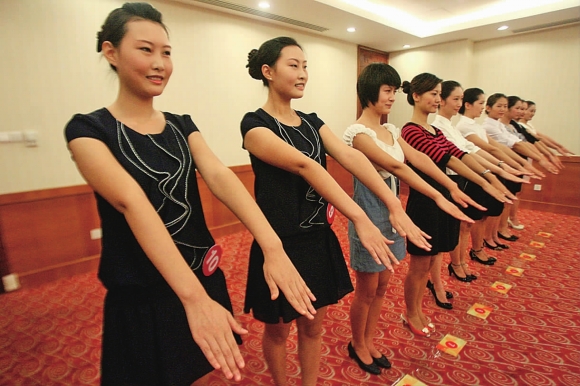 27日,在国敦大酒店,一对来自河北的双胞胎姐妹高晓乾和高晓宇正在参加空姐的招聘考试。当日,海南航空再一次来到青岛招聘空乘员。对于空中乘务员的应聘者,航空公司主要注重应聘者的体态、英语水平、亲和力和应变力。