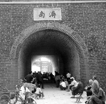 走进东阿洛神湖公园,一段青砖砌成的古城墙映入眼帘,顺着这段古城墙向右走,总高23米的民国时期济南老城门,气势恢宏。登上城门,整个景区一览无余:正冲着城门口的是一个典型的四合院。四合院右边,是一座具有民国时期时代特征的建筑。