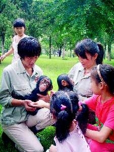 刚刚落户济南动物园的非洲小猩猩与游客见面。黄金周马上就到了,节日期间,动物园将举办以“观动物·赏功夫·欢度国庆”为主题的游园活动。为给游客献上丰盛的节日大餐,动物园29日对活动进行了预演。 本报记者 王光营 见习记者 李黎 摄
