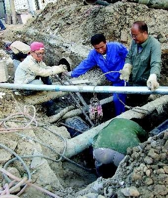 9月29日,工作人员正在德城区罗庄焊接新更换的暖气管道o据悉,