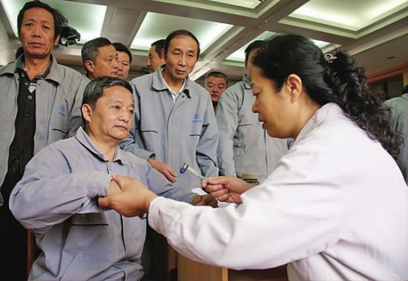 29日上午,泰安市中心医院脑血管、中医、妇科、普外科、骨科的专家一行十余人来到泰安航天特种车有限公司,为该厂的200余名工人进行义诊,并为工人们开设了健康讲堂,介绍日常保健知识。同时,一辆44座大客车改装成的流动医院也开进了泰安航天特种车有限公司,医生们利用车上的彩超、心电图机等近百万元的设备,为工人们做体检。泰安市中心医院工作人员介绍,此行来的专家全部是博士,他们还将深入泰安各大企业,为一线的工人送去健康。在该厂工作了40多年的泰安市劳动模范邢立德激动地表示:“以前天天忙工作,根本没有时间去医院体检。现在,泰安市中心医院的专家们进工厂进行义诊,给我们带来的是一种精神上的支持。”