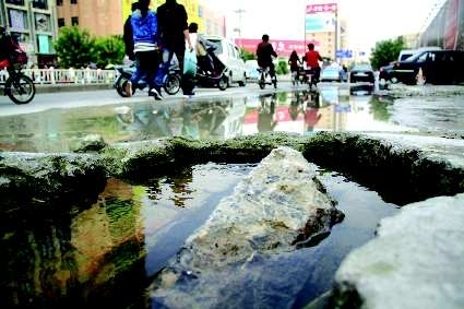 29日下午,在通达路与解放路交会处西100米,附近—建筑工地将地下水排到马路南侧,给行人和车辆带来许多不便o据附近—店主介绍,这种情况已经持续了很长时间,如此浪费地下水,实在可惜。 记者徐升 摄