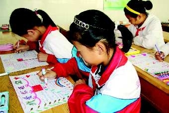 9月29日,小学生在制作“庆国庆爱祖国”手抄报。国庆将至,罗庄区教育局组织开展“绘美景颂祖国”系列活动。全区广大少年儿童设计制作了—幅幅精美的手抄报和绘画作品,表达对祖国母亲的热爱和祝福。
