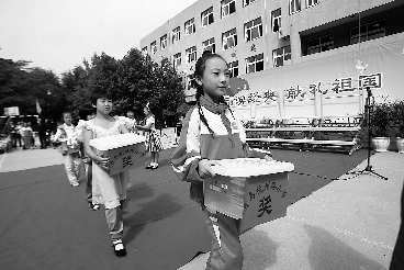 29日,在青岛杭州路小学,诵读比赛的胜者获得了—箱爱国图书。当日,青岛杭州路小学举行“品读经典,献礼祖国”的主题活动。