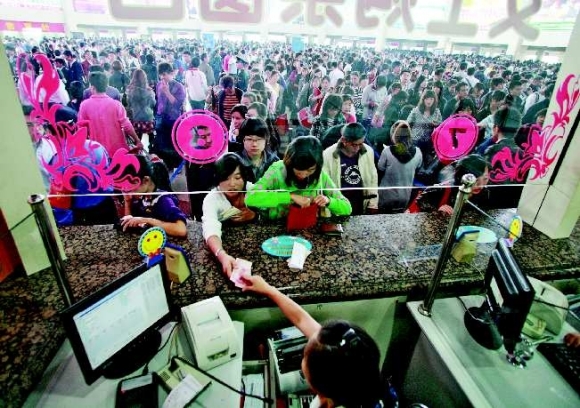 9月30日,旅客在济南长途汽车总站售票处前购票。公路客运提前迎来“十—”黄金周客流高峰,仅济南长途汽车总站当日就有近十万旅客出行,总站为此加开双倍售票窗口。 本报记者王鸿光摄