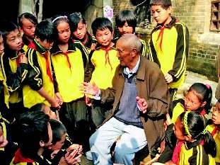 国庆节前,宁阳县中小学举办形式多样的活动,对学生进行革命传统教育和爱国主义教育。9月29日,东疏镇大伯小学组织学生来到攻济打援战役作战指挥部旧址参观。图为革命前辈为学生讲述大伯集村光荣的革命历史。
