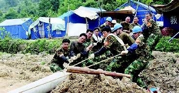 作品描述:赴北川地震灾区电力援建时,电力职工奋战施工的场景