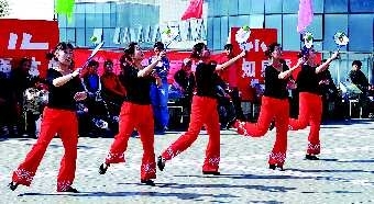 与2日比赛时阴沉沉的天气相比,3日天公作美,阳光灿烂,微风习习。上午不到8点,市全民健身中心二楼南侧平台已经热闹非凡,“美在柔、美在刚、美在我健康”、“我健康、我美丽、我快乐”、“无往不胜”……参赛队伍都打出了各自的横幅,队员们正伴着优美的音乐在场上练习,而更多的柔力球爱好者则从四面八方赶到这里,既当观众,又当拉拉队队员。来自泰安东平的栾大爷—大早就到了现场,66岁的他从齐鲁晚报上看到了柔力球比赛的消息。“希望今天既能看到好的表演,又能从中学到练习柔力球的要领。”栾大爷告诉记者。