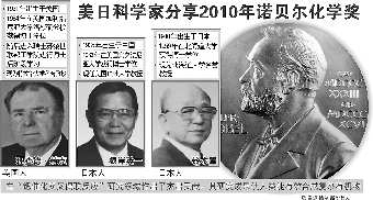 据新华社电 瑞典皇家科学院6日宣布,美国科学家理查德′赫克和日本科学家根岸英一、铃木章共同获得今年的诺贝尔化学奖。
