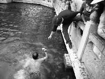 本报济南10月8日讯(记者 姬生辉)两名游客在趵突泉公园游玩被挤进泉池中,幸被及时救上岸,但其中一名乘客的随身物品遗落在潭底,此后他又两次下水打捞,但因水流急、水太凉无功而返。