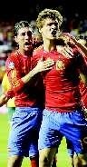 10月8日,西班牙队球员略伦特进球后与队友庆祝。当日,在2012年欧锦赛预选赛中,西班牙队主场以3:1战胜立陶宛队。 新华社发