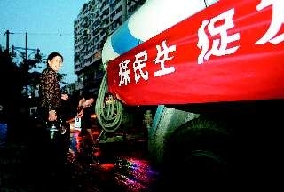 下午4时40分许,当记者来到烟台十中附近应急供水点时,一辆储水量达10吨的水罐车已早早等候在那里。据在场的一位工作人员介绍说,按规定他们应该在下午5时至7时在指定位置为市民送水,为了避免路上堵车等因素,他们提前了20分钟就已到位。但是,在随后的半个多小时时间里,记者未发现有市民前来接水,一位路经此处的刘女士说,家里凡是能装水的容器已经都灌满了,当天是肯定够用的了。