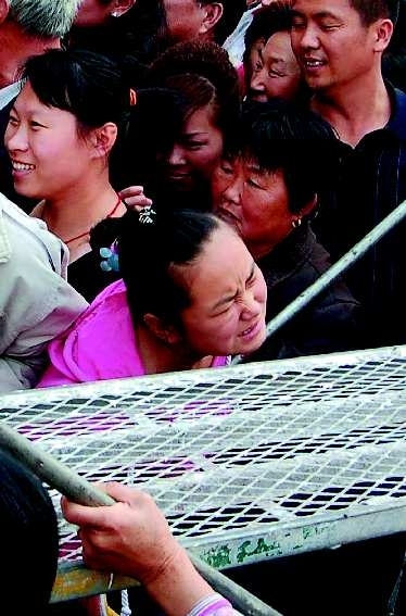 10月7日,东营市某商铺的秀场前,一位小女孩被“抢购大军”挤得都快哭了。 见习记者 段学虎 摄