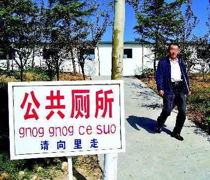 本报泰安10月12日讯(记者 曹剑)汉字公共指示牌下加拼音原本是为了方便市民阅读,但泰城天颐湖旅游度假区内一处公共厕所指路牌却因为错把“公共”拼成“gnoggnog”引发市民的挑错热情。