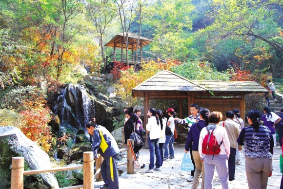 柱,蔚为壮观。天门瀑、白龙潭、黄龙瀑、丫字瀑皆飞流直下,形成了云台山独有的瀑布景观。多孔泉、珍珠泉、王烈泉、明月泉清洌甘甜,让人留连忘返……