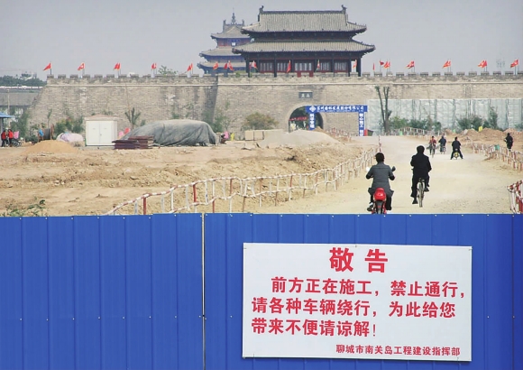 10月12日,古城外南关岛施工建设以来,为保障市民安全,南关街进行封路并设立警告牌,提醒过往市民绕道而行。