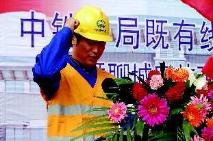 10月12日,聊城火车站改造工程青年突击队举行大会o聊城站在原址上改造重建,在保证京九线不停运的前提下,无站台柱雨棚和天桥施工均为跨线要点施工,安全生产压力大o该工程主要管理人员绝大部分是80后,举办此次誓师大会,为的是进一步强化青年员工的安全意识和技能o本报记者 王传胜本报通讯员 李琳琳摄