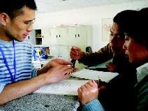 在交费室旁边就是86户居民的幸福所在———新房领钥匙处。华信家园的工作人员早就将各屋的钥匙放在写好的信封里。在检查了相关手续以及交费单后,工作人员将一大串钥匙拿出,并一把一把告诉哪把是单元门的,哪一把是储藏室的。面对热心周到的物业服务,居民们赞许地点头。