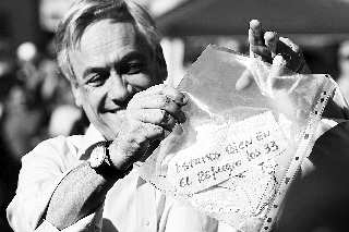 皮涅拉当天向媒体宣布,救援人员的测深钻头达到地下688米处后,被困矿工将一张手写字条绑在钻头上,告诉救援人员,他们全部33人仍然活着。